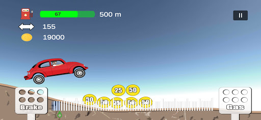 Gain bonuses from tricks and collect coins to upgrade your car and reach even higher distances.