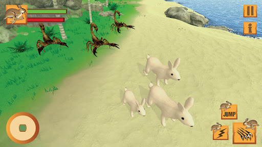 This earlier level game challenge enhance the confidence in player for playing as defender against rabbits predators in the game. The story moves on and player rabbit takes the family for a dinner, The young cute rabbit bunny and rabbit mate are very joyful on the dinner event where a cobra and python attacks the family due to carving in stomach. The rabbits father again takes the responsibility and protects his family from the predator which establish confidence in the player rabbits. The jungle adventure change the story in the game when the wild forest animal predator come across the family and cute rabbit kids got fear of being killed. The player learns in the game how to safe the cute Rabbits animal Family from this unwanted suddenly encountered scorpions group. other fierce forest animals like wolf family can attack on rabbits. so hero rabbit have to rescue his family.