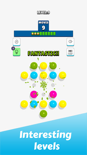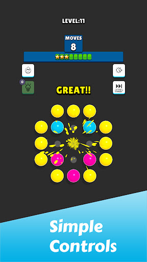Simple rules and controls, to complete the level you need to Tap on the intersecting point of the color balls with given moves and finish the level