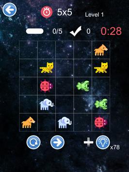 Connect two matching animals with lines flow to fill the whole board. It's simple in small size board, but will become more challenged in bigger size board.