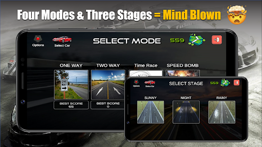 The next generation in mobile racer games is here! Jump behind the wheel and race through the endless busy roads and highways! Make near traffic misses discovering unique locations! Be careful! Roads and highways are full of speeding trucks and cars – they can bother you! Only the best racer will be immortalized in the halls of street racing fame.