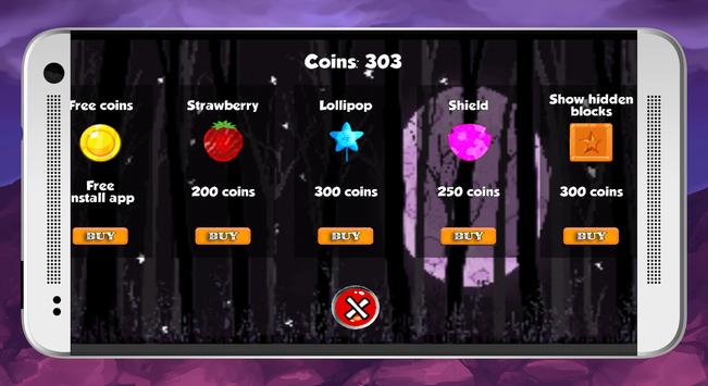 - assemblez un maximum de pièces de monnaie et des bonus pour obtenir plus de points et achetez des produits supplémentaires.