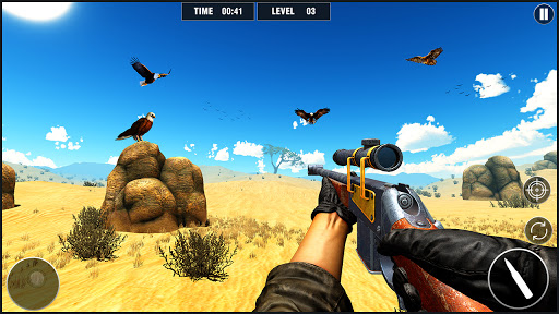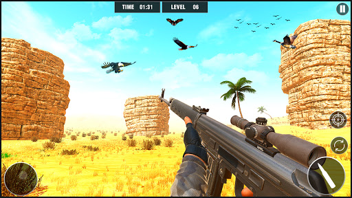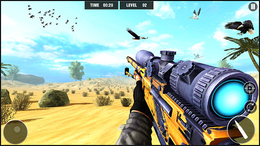 Hold your breath! AIM & SHOOT your flying targets in this real sniper 2021 game with best sniper rifles and hunting campaigns on desert, jungle and safari. New Sniper Hunter challenges are waiting for you as being a top sniper shooter was never easy. Enjoy the thrill of this gun game with wild hunt targets and free game play. Choose the best shooting weapons and equip with real sniper guns in this gun games. Feel the fury of wild in the hot summer of desert with real shooting action games 2021. Aim your shooting target precisely in the cold mountains while sniper shot the wild eagles, crow and other birds. Show your sniper shooter skills and be the best hunter of this games 2021. The best shooting fun of this game is that you can enjoy all the levels and campaigns of this game while you are offline. Enjoy this new games excitement and be the superhero hunter and savior in the jungle for your squad.