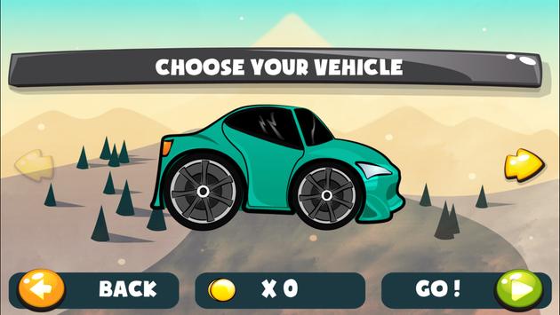 Try our new car hill racing game and play all day long collecting coins! If you want to play a free car racing game for kids, you need to download this game now! The objective is simple, race and collect coins of gold. Go fast and earn many coins to upgrade your car. The game include 4 racing cars. Begin with a slow racing car first and make your way trough the best and fastest car!