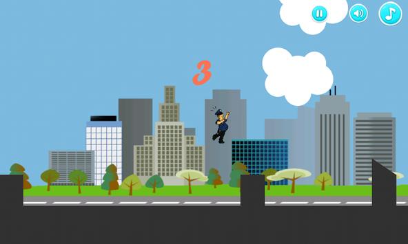 Keep the Police man running all over the city. Jump over buildings.