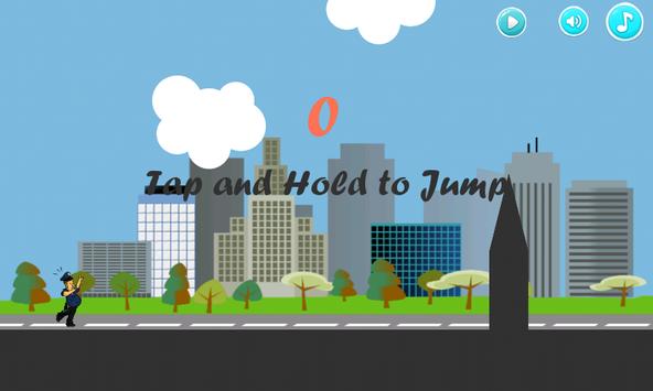 Tap the screen to make him jump, keeping him safely away from buildings.