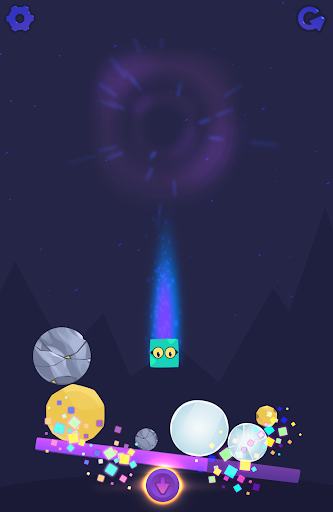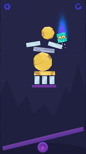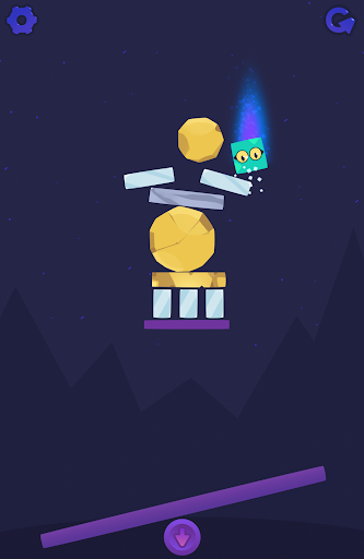 Your object: launch the little square hero through the air to destroy everything above it. Tapping near the edge of the catapult provides more launching power, and you can tap as much as you like.