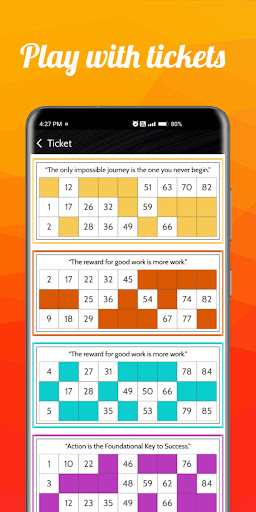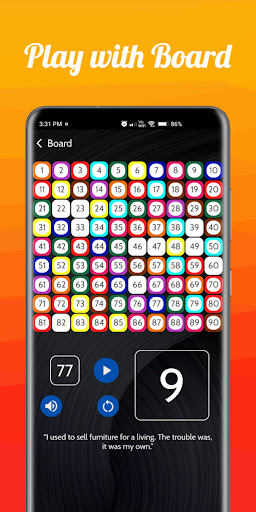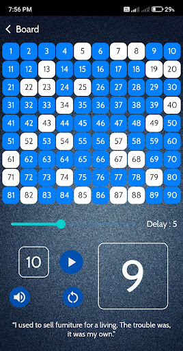 In BOARD screen , random numbers will be generated by organizer or host and it will announce as well as in your preferred language. We have 8 languages including English, Hindi, Bengali etc.