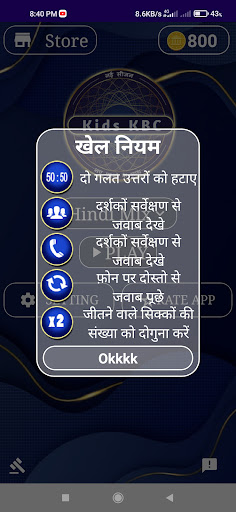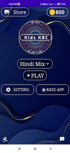 KBC for Kids Quiz Game in Hindi & English language for kids knowledge increase