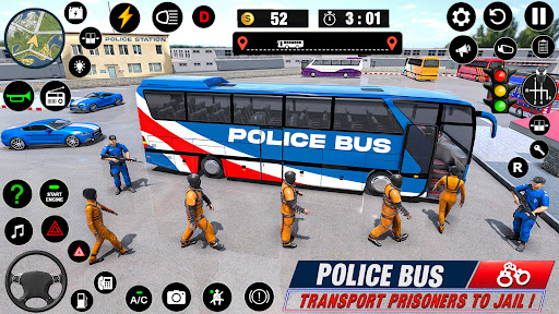 Pick your favorite buses of prisoner transport game to either drive around the city or freely to complete missions to level up and become the king of the road.