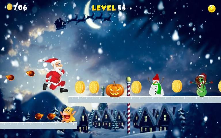 jungle santa castle run is a running moto game in which you need to cross different obstacles, overcome sudden dangers while run fast and dodge all obstacles. Collect coin and others item like pineal and pogo to higher score.