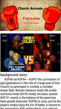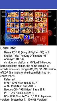 KOF 98 no separate story, is simply experience the fun of battle games. This is called "truce never dream of war" will work in front of the popular role generations gathered Page One, a total of more than 50 characters can be selected, collection of KOF series Kasumi Todo, high Nitz, two moon shadow serpent and all roles 96BOSS team outside.