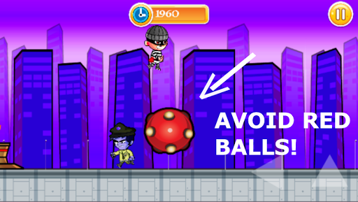 Run from the cops until you die! The Robber is escaping and the Polices are trying chasing him. You have to be fast If you do not want the cops to chase you! Robber and cops are both running but some cops will not be behind you. They will try to catch you from in front of you.