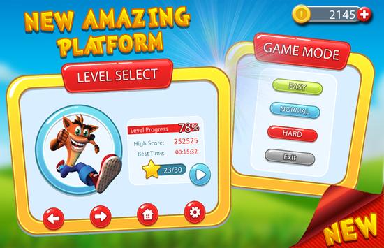 It is like the old school games. Although the environment appears to be peaceful and beautiful, there’s something dangerous In The jungle World. You must control your bandicoot to find a way out and crash the enemies.