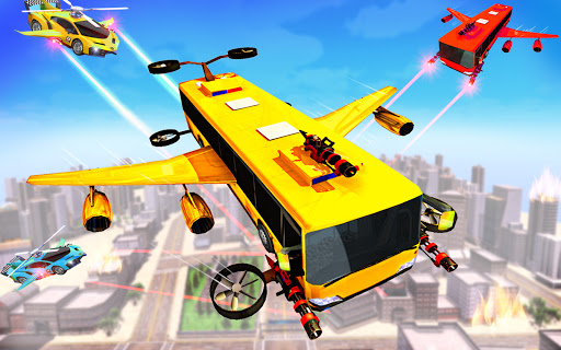 🔥🔥Test your best flying games in the google play store, like helicopter flying games, Airplane flying games, and school bus driving games, and improve your ability at the same time in this city school bus driver extreme flying car game and get the amazing experience of flying in this bus jumping futuristic robot game. Explore the most beautiful and realistic 3D Environment in a bus jumping futuristic robot game. This adventure free-to-play flying school bus offers you to fly your futuristic flying school bus everywhere in the best free school bus games 2021.🚌🚌
