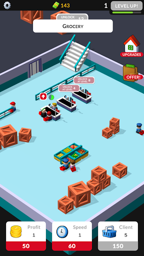 👉 Upgrade your staff, so they move faster, and offer additional products to customers at cash desks – you will earn even more!