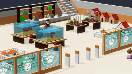Sit comfortably on your boss chair and watch as your customers interact with the rich environment – as they’re putting products in their shopping baskets, or eating hamburgers! Play idle, or tap on them, to make them move faster – enjoy the casual game style!