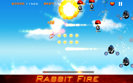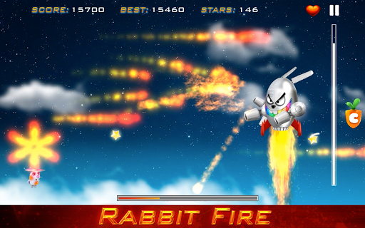 Rabbit Fire is an exciting and challenging game, we honor the style of ship games of the 1980s and 1990s, with force field, special shots, combos, annoying bosses and incredible speed.