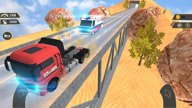 Keep your speed above 100 km in order to get score. With the coins earned, you can unlock new Racing trucks and new racing tracks on various boulevard. Besides, you can update braking, acceleration and handling skills of your Racing trucks to race in extreme. Demolition will not bring coins but distance and close overtakes are to get a high score. When you overtake the vehicles in opposite direction, you get more score! But don’t rear end or crush vehicles in this crazy traffic. There is no artery no criminal in this joyful Cargo Truck racing