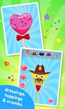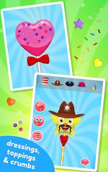 Add the final touch with dressings and toppings and colorful crumbs. If you like cute faces, decorate the lollipop with eyes, mouth, moustaches, hat, bow, tie, eyeglasses or many other accessories available.