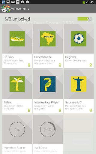 Football, fun, flags of the world and challenge are building blocks of this memory game. Learn flags of fifa world cup qualifiers while matching flags. Collect achievements that are designed to show symbols of Brazil.