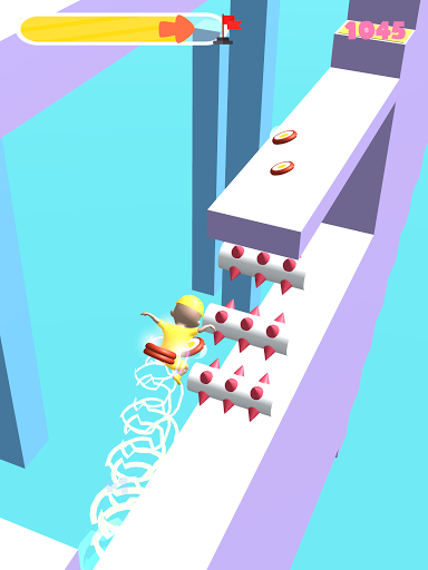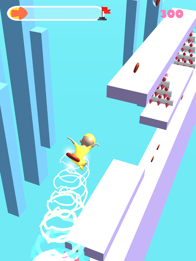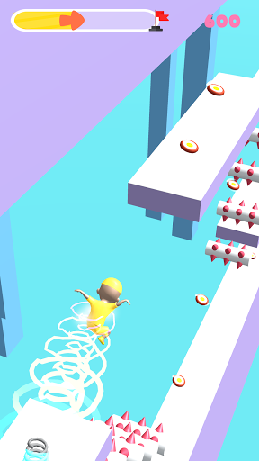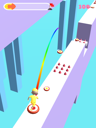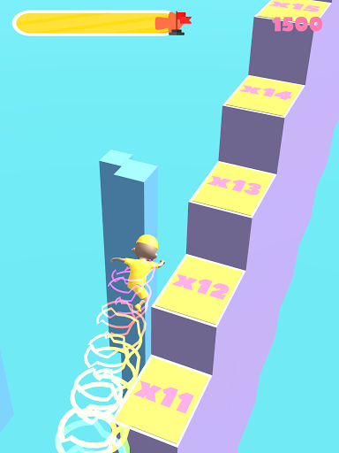In the game you need to jump over obstacles using trampolines. the number of trampolines is limited, each jump consumes 1 charge of the trampoline. you need to collect as many trampolines as possible to complete the level, and at the end of the level climb to the top!