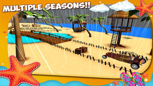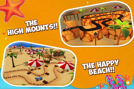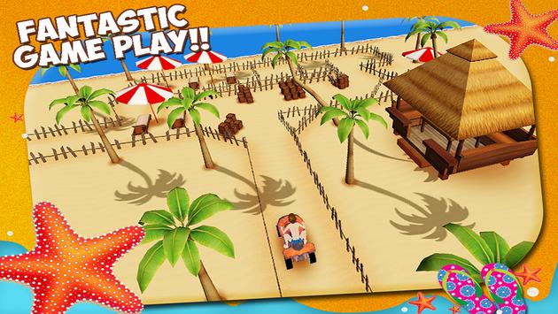 Ride the cartoonish buggy on the happy beach while the cool breeze blows. You see people hanging out and partying on the beach surrounded by beautiful cottage shades, coconut trees. Ride on wooden bridges and get good bumps and jumps. The wooden bridge is straight over the little blue pond so little carelessness and you will find yourself splashed in the cold freezing water..