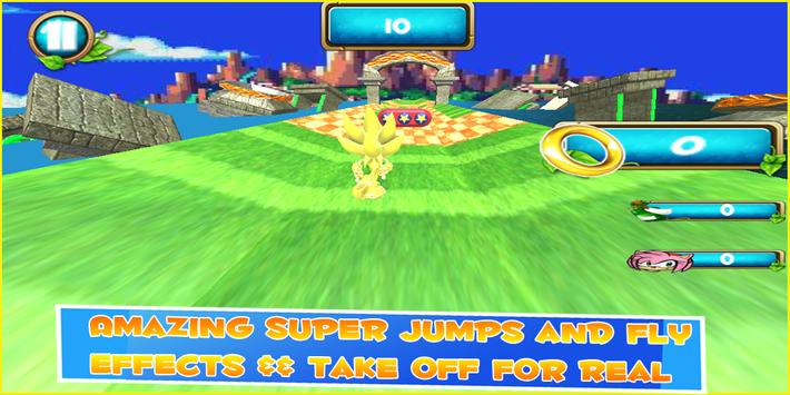 You like magical effects and saving your hedgehog heroes then help super sonic jump and run and fly to help his best friend of sonic amy, and get together with all the rest of the team like knuckles and sonic shadow.