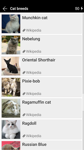then you can use the catalog and learn. Each breed card contains a photo, name, and a link to a Wikipedia page.