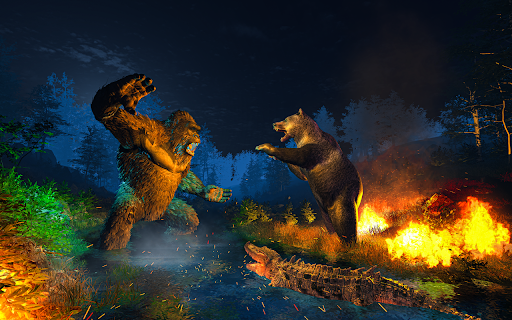 Welcome to the enormous open world wild simulator join the monster simulator fight with the super battling of angry gorilla vs wild animals. So begin the experience filled game yeti versus wild animals or ultimate Bigfoot versus wild dino. There is circumstance of battle in wild gorilla and dinosaurs are making wild frenzy and furthermore stomping an on down your area in jungle simulator. So in this endurance circumstance you need to begin a wild gorilla fight with wild beast and stop the frenzy made by these tremendous monsters Jurassic creatures. In this Angry gorilla versus beast: Wild Jungle Battle you need to acquire wellbeing buy chase out blameless gorilla simulator creatures and make them your prey. They can smell you, so make no clamours when you're on a mission to get them. Carry on with life simulator as a hunting games humanoid and attempt to overwhelm this hunting simulator! Forest Wild big foot is loaded up with various sort of creatures, you can bounce, jump and scratch, a guide is given to scale the entire backwoods to track down the objective to get.