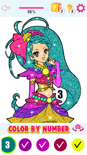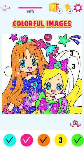 We are presenting you the amazing and anti stressing Kawaii Anime Manga Color By Number Anime Glitter Coloring Book Pixel Art app.