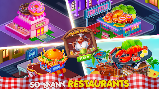 - Quickly improve your cooking skills, master the cooking recipes of each type of cuisine, unlock more themed restaurants, and become the real top chef in the cooking city!