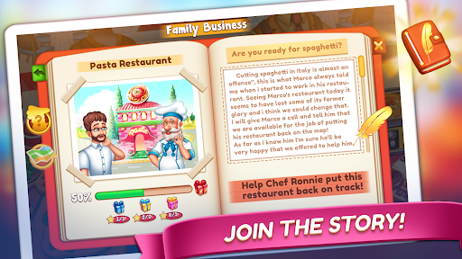- Join the Story - help restaurant managers put their kitchens back on the map by finishing fast cooking games.