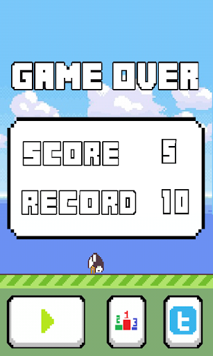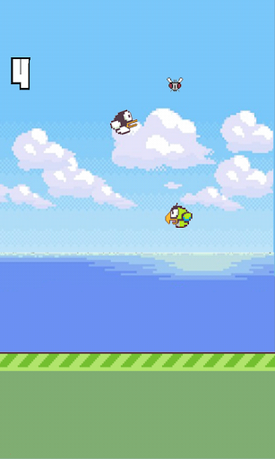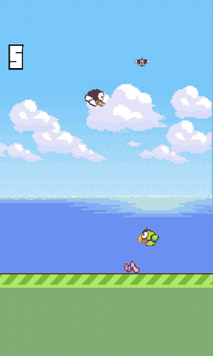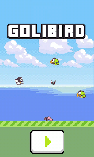 Fly with Goli eating many flies and worms as possible to earn points (fly 1 point - worm 3 points) avoiding the parrots and the floor.