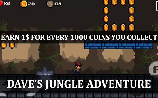 Dave is adventurous. Dave will jump from obstacles to obstacles to collect coins and fight off enemies who are in the way.
