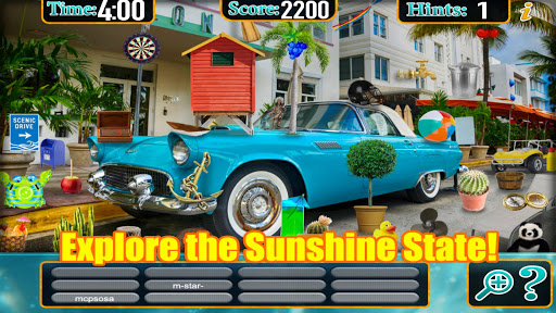 Hidden Objects Florida Travel is a beautifully designed Seek & Find game with numerous “Sunshine” state themed levels and Fun items!