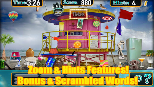 Search and Find plenty of Florida beach landmarks, flamingos, alligators and more! FREE App with ads. Buy in-app pack and NO ads. Spy 100's of Objects!