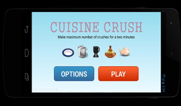cuisine crush is a funny game You need to put the same things in same line for win and pass to an other level; enjoy!