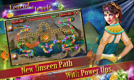 Legend of Jewels is a match 3 arcade puzzle game. Your objective, in this game, is to destroy all the appearing jewels as quickly as possible. There are 2 unseen paths on which jewels are coming and trying to drain out. You have to collect them all before the time runs out. You will be able to destroy them if 3 or more identical jewels come together or if a power jewel comes to hit the chain. This is a 2 path elimination game; you have to pay equal attention on both the path, if jewels of either of the path drains out, the game will get finished. You have to collect as much golden stars as possible to unlock the next exciting world of jewels with mysterious pyramids. There are 100 levels and so many powers to make the game interesting and challenging.