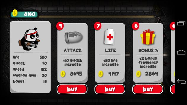 to equip your panda, RPG style: use the coins you win in every play to improve Rocky the Panda skills and