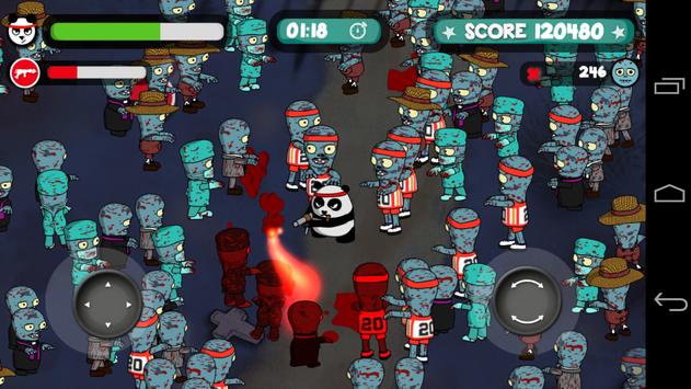is a top-down survival game featuring beautiful pre-rendered 3D graphics, smooth controls and highly engaging mechanics. You control Rocky the Panda to kill the zombie hordes constantly coming to you, with the aid of multiple weapons and bonus.