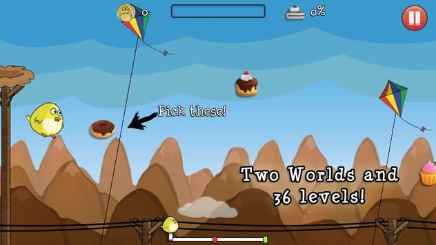 Fly across 36 levels in Story Mode and don't leave him alone! You must avoid all your enemies, Airplanes, Birds, Nets, Kites and more' Pick all Sweeties you can and Slide to get more points and defeat your Angry and fools enemies!