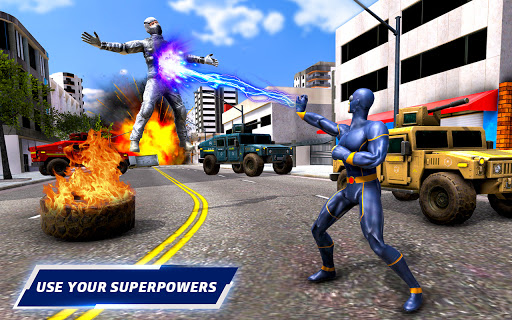 Get ready to rescue the city from the gangs. Start your mission story in the crime city. Vegas city is full of gangster and bad guys start rescue the innocent people and become a Flying Fire superhero by destroying the city theft. Thrilling action and adventure game are full of excitements with Robot Transform. Mafia boss has planted the hidden shooter and street thugs in the mid city. Grand Police and spider rope superheroes has to use their super powers to become a cunning and fearless so that speedhero reach in attack location in time. City Cop is failed use your fly power at high speeds and act like ha superhero ninja light to rescue the world with some adventure moves. RPG elements can help you to customize your superhero and rope hero flying master. Start playing this Futuristic Flying Superhero Stunt Simulator 2021 Game.