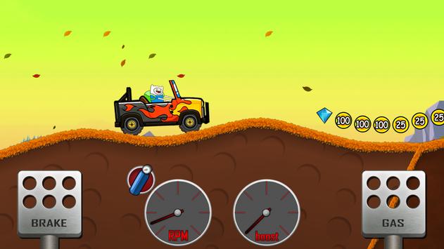 In the game Hill Adventure Racing Time, you'll help Fin drive. Avoid all obstacles facing, hurry as fast as possible. You just have to touch the button to control Fin car to walk forward, back, and jump.