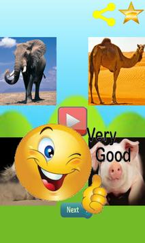 When you select the option Let's Play, Four images will display on a screen with one sound, if you missed to hear the sound you can press the play sound again. There is one animal image that's sound has played. If correct images was clicked then your kid will see exciting "Very good" message and new images will appear on screen with new sound.