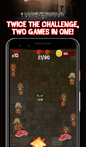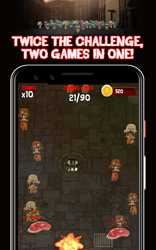• Arcade Mode: Kill waves of undead Zombies and splatter their multi-coloured brains all over 14 increasingly challenging levels.