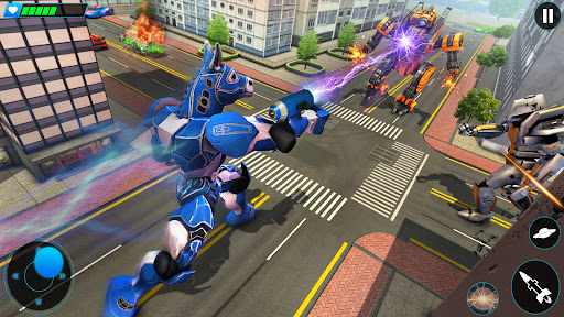 Do you have what it takes to be a muscle car that can transform into a robotic flying donkey? Your mission is to save the city from evil robots as a fighter in donkey car robot game. Transform the battle by shooting mechanical warriors in a flying donkey robot game. The transformation of the Rage robot into a modern city poses a serious threat to mechanical warriors.