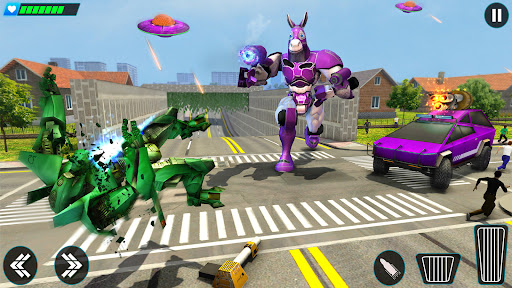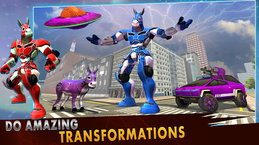 Welcome to Donkey Car Robot Game. It is a wonderful gift for users who like to play robot games with infinite function flying spaceships. This space robot transformation game is a combination of donkey simulation games and flying shooting battles. The game of the donkey robot is a joy for our dear audience. So get our free car robot game to enjoy unlimited aspects of shooting games. Don't waste your precious time and choose this crazy spaceship robot game. Imagine aliens landing on planet earth in this space robot transformation game with evil intentions to destroy the modern cities. You have to play the role of a super mechanical warrior as the last hope to save civilians in the donkey robot game.