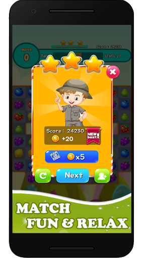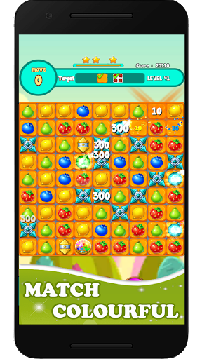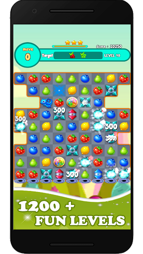 Move and Match 3 or more of the same colored fruits mania-crush. Enjoy the fun storyline, hundreds of levels, secrets, treasure hunting,and more on your fingertips! And Clear all various missions.