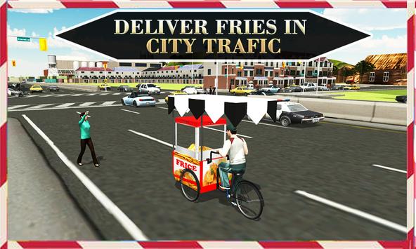 Ride fries pushcart & start transporting salty, crispy and yummy fried potatoes to waiting customers! Turn on super hawker cycle ignition, take extreme handcart & drive fast. Crazy about delivery simulator games? Dive full on in this delivery driver moto 3d with super hot driving & parking adventure. Be best & real food cargo transporter driver 3d & race your tricycle cart through big city traffic, keep slicing & dicing potato, frying pan burning, & enroute to reach customers on time with their fresh out of fryer hot salty potato fries! Push the trolley & turn on the jingle song in beautiful urban town environment.